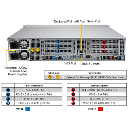 2x PCI-E 4.0 x16 AIOM (OCP 3.0); 2x PCI-E 3.0 x2 NVMe M.2 - Dual AIOM with NCSI (OCP 3.0) for Networking, 1x Dedicated IPMI LAN
