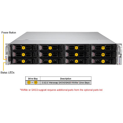 - 12x 3.5/2.5†Hot-swap NVMe/SATA/SAS Drive Bays