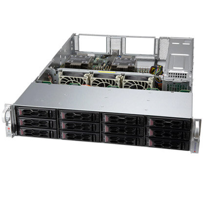 The Supermicro SuperServer 620C-TN12R 2U 25.5" depth Rackmount server features dual 3rd Gen. Intel® Xeon® Scalable Processor, up to 6.0TB DDR4 RDIMM/LRDIMM Memory, two NVMe M.2 slots. The Supermicro Server 620C-TN12R comes with 12x 3.5/2.5†hot-swap NVMe/SATA/SAS drive bays, 3x heavy duty fans, and is equipped 1200W redundant titanium level power supply.