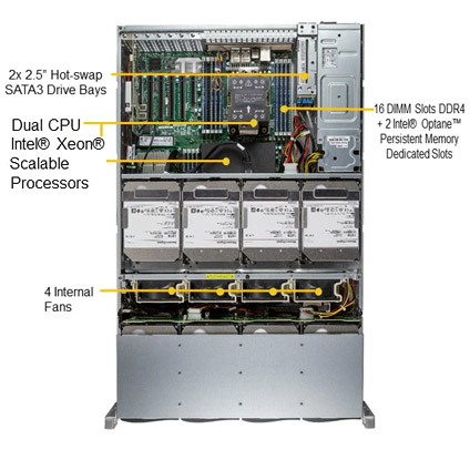 - 16x ECC DDR4-3200: LRDIMM/RDIMM + 2 Intel® Optane™ Persistent Memory Dedicated Slots, Up to 4TB