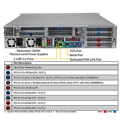 - 1x PCI-E 4.0 x16 FH, 10.5"L slot; 1x PCI-E 4.0 x16 LP slot; 5x PCI-E 4.0 x8 FH, 10.5"L slots (PCI-E 4.0 x16 options available); 1x PCI-E 4.0 x8 internal LP slot
