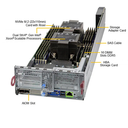 Optional M.2 (22x80) HW RAID1 NVMe Boot Controller via SCC-A2NM2241G3-B1 - Network connectivity via AIOM (OCP 3.0 compliant)