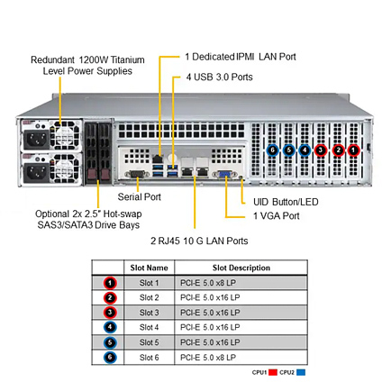 - 4x PCIe 5.0 x16 Low Profile, 2x PCIe 5.0 x8 Low Profile