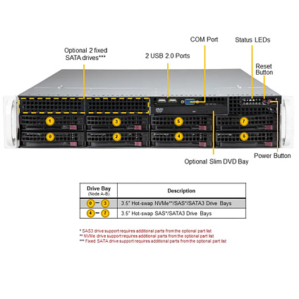 (NVMe/SAS support may require additional storage controller and/or cables) - 1x Slim DVD Bay (Optional)