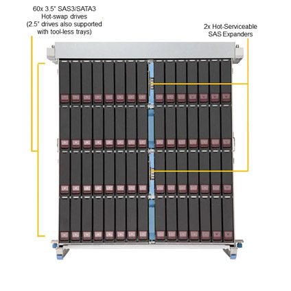 - 60x 3.5"/2.5" Hot-swap SATA3/SAS3 Drive Bays (Each Node Controls 30 Drives)