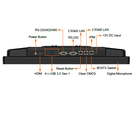 The AFL3-W22C-ADLP high-performance fanless panel computer is a robust computing solution built to excel in demanding environments. It harnesses the power of 12th/13th Gen Intel Core i7/i5/i3 processors paired with 8GB DDR4 memory, ensuring exceptional processing capabilities and multitasking efficiency. Offering seamless connectivity with an HDMI output and dual 2.5GbE LANs, it facilitates high-speed data transfer and external display connectivity. This panel computer is equipped with IPMI remote management for enhanced accessibility and maintenance convenience. Its three M.2 expansion slots enable extensive customization and scalability. The device features a durable, RoHS-compliant 10-point capacitive touchscreen with anti-glare and UV-resistant properties, ensuring reliability and usability in various challenging environments, making it an optimal choice for industrial applications requiring high performance and durability.