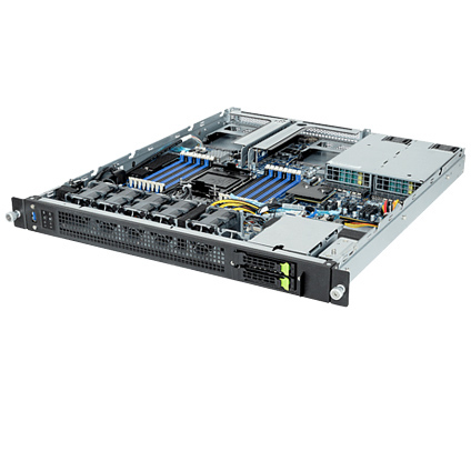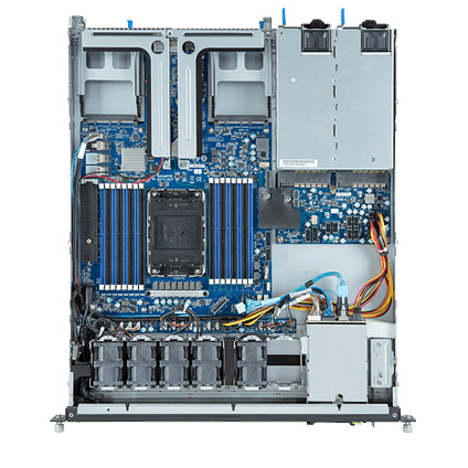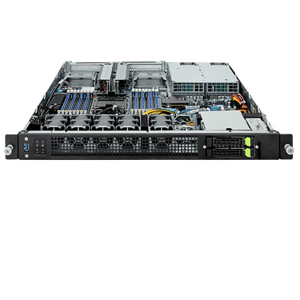 The Gigabyte E163-S30 (rev. AAB1) is a versatile 1U server powered by 5th/4th Gen Intel Xeon Scalable Processors, 16x DIMMs 8-Channel DDR5 RDIMM memory. For storage capabilities the E163-S30 (REV. AAB1) has two 2.5" Gen4 NVMe/SATA/SAS hot-swappable bays. For expansion purposes there are up to two FHHL PCIe 5.0 x16 slots, and two OCP 3.0 Gen5 x16 slots. The Gigabyte Server E163-S30 (rev. AAB1) is equipped with five 40mm 30,000 RPM cooling fans, and 800W redundant 80 Plus platinum power supplies.