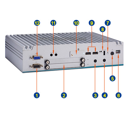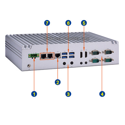 - Supports 2 HDMI, VGA, 3 GbE LAN, 4 COM and 6 USB