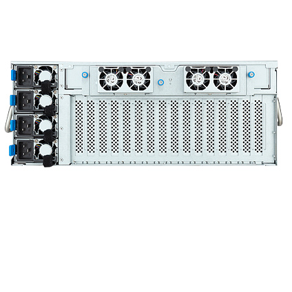 The Gigabyte GPU Server G493-ZB1 (Rev. AAP1) 4U Rackmount Server features dual socket AMD EPYC 9004 series processors, 48x DDR5 ECC RDIMM slots, supports up to 10 x dual slot Gen5 GPU cards, comes with 8 x 2.5" NVMe/SATA/SAS hot-swap drive bays, and 4 x 2.5" SATA/SAS hot-swap drive bays. The Gigabyte Server G493-ZB1 (Rev. AAP1) is equipped with 3+1 3000W 80 plus Titanium redundant power supply.