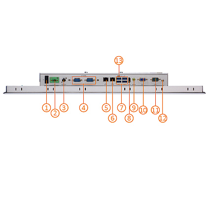 The GOT321A-ELK-WCD multi-touch panel computer is a versatile solution designed for various applications. Featuring a 21.5" FHD projected capacitive multi-touch widescreen, it delivers vivid visuals and intuitive touch controls. Its fanless design, powered by the Intel Celeron processor J6412, ensures efficient and silent operation. Optional support for WLAN module and antenna enhances connectivity options. With a 2.5" SATA SSD, this system offers ample storage for diverse needs. Equipped with 2 LAN, 4 USB, 1 COM, 1 HDMI, and 1 VGA ports, it facilitates seamless connectivity with various peripherals. The IP65-rated aluminum front bezel ensures durability and protection against dust and water ingress. Offering flexible mounting options including panel mount, VESA mount, desktop stand, and wall mount, this computer adapts effortlessly to different environments and setups, making it an ideal choice for versatile industrial and commercial applications.