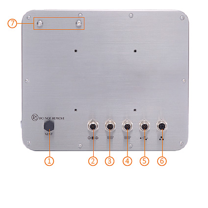 - 1 x RS-232 (M12), 1 x RS-232/422/485 (M12), 2 x USB2.0 (M12), 1 x GbE LAN (M12)
