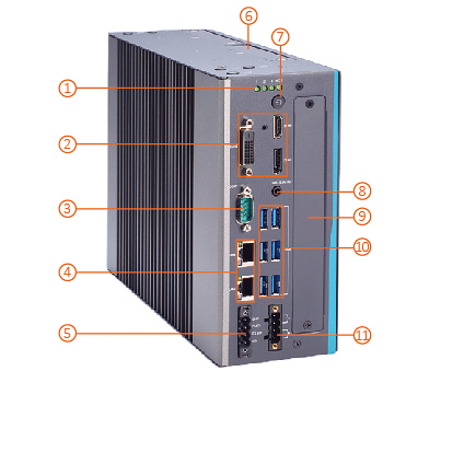 - 6 x USB 3.2 Gen2x1 (10G) type A, 1 x USB 2.0 (Internal, up to 30mm) 180D type A