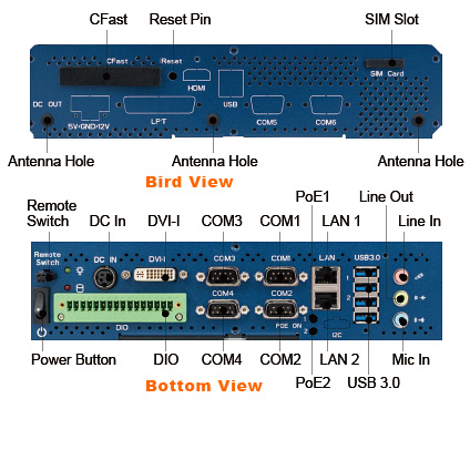 1 x Half Size mini-PCIe (Mini PCIe and USB Signals) - 1 x SIM Slot, 1 x CFast Slot