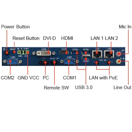 - 2 x COM Ports, 3 x USB 3.0, 2 x GbE LANs with PoE