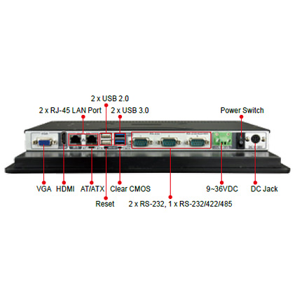 The PPC-F12B-BT is a fan-less Touch Panel PC designed with a robust IP65 aluminum front bezel, which is ultra-thin for seamless panel mount installation. The touch screen is a projected capacitive multi-touch with a resistive single touch option. The PPC-F12B-BT supports Intel's Celeron J1900 quad-core SoC and two 204-pin DDR3L SO-DIMM slot for a maximum of 8GB. The operating temperature is from 14°F ~ 122°F and power input range 9V~36V DC.