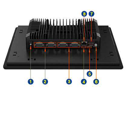- 2 x RS-232 (DB9), 2 x RS-232/422/485 (DB9), 4 x USB 3.2, 1 x USB 2.0