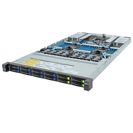 The Gigabyte Server R183-S92 (Rev. AAD2) 1U Rackmount Server features dual socket 4th Gen Intel Xeon Scalable Processors, 32x DDR5 ECC RDIMM slots, comes with 4 x 2.5" Gen4 NVMe/SATA hot-swappable bays, 8 x 2.5" SATA hot-swappable bays, and is equipped with 1600W 80 plus platinum redundant power supply.
