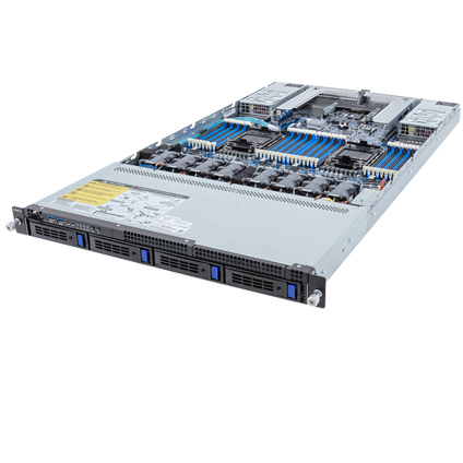 The Gigabyte Server R183-S93 (Rev. AAC2) 1U Rackmount Server features dual socket 4th/5th Gen Intel Xeon Scalable Processors, 32x DDR5 ECC RDIMM slots, comes with 4x 3.5" hot- swappable SATA/SAS drive bays, and is equipped with dual 1300W 80 plus platinum redundant power supply.