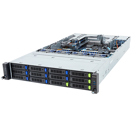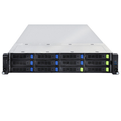 The Gigabyte Server R283-S91 (Rev. AAE1) 2U Rackmount Server features dual socket 4th Gen Intel Xeon Scalable Processors, 32x DDR5 ECC RDIMM slots, comes with 4 x 3.5"/2.5" Gen4 NVMe/SATA hot-swappable bays, 8 x 3.5"/2.5" SATA hot-swappable bays, and 2 x 2.5" SATA hot-swappable bays on rear side, onboard 12Gb/s SAS expander. The R283-S91 (Rev. AAE1) is equipped with 4x 80mm 18,300rpm cooling fans, and 2000W 80 plus platinum redundant power supply.