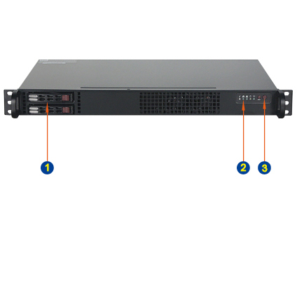 The RMS1510 1U server chassis is a compact yet powerful solution designed for high-performance computing in space-constrained environments. It features a 200W 80Plus Gold-certified power supply for energy efficiency and a low-noise design, making it suitable for office or lab deployments. The chassis includes two 2.5" hot-swap SAS/SATA HDD bays for flexible storage, one low-profile PCIe expansion slot, and three 8500 RPM cooling fans to ensure optimal thermal management. Front-panel controls include a power switch, reset button, and five LED indicators for easy monitoring.