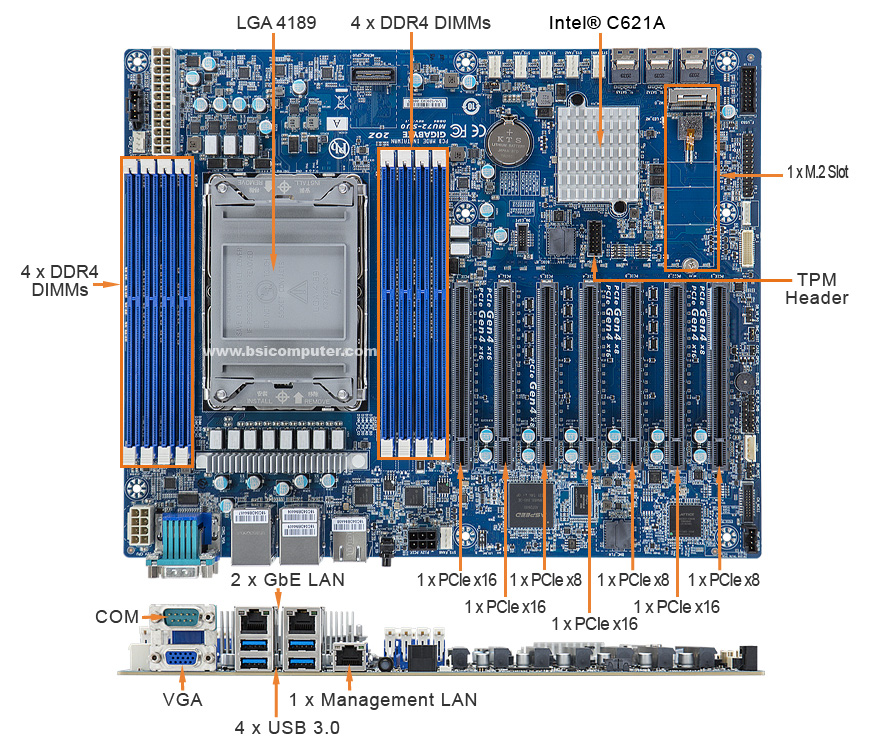- Built-in 1x 10GbE LAN, 1x GbE LAN (Shared IPMI)