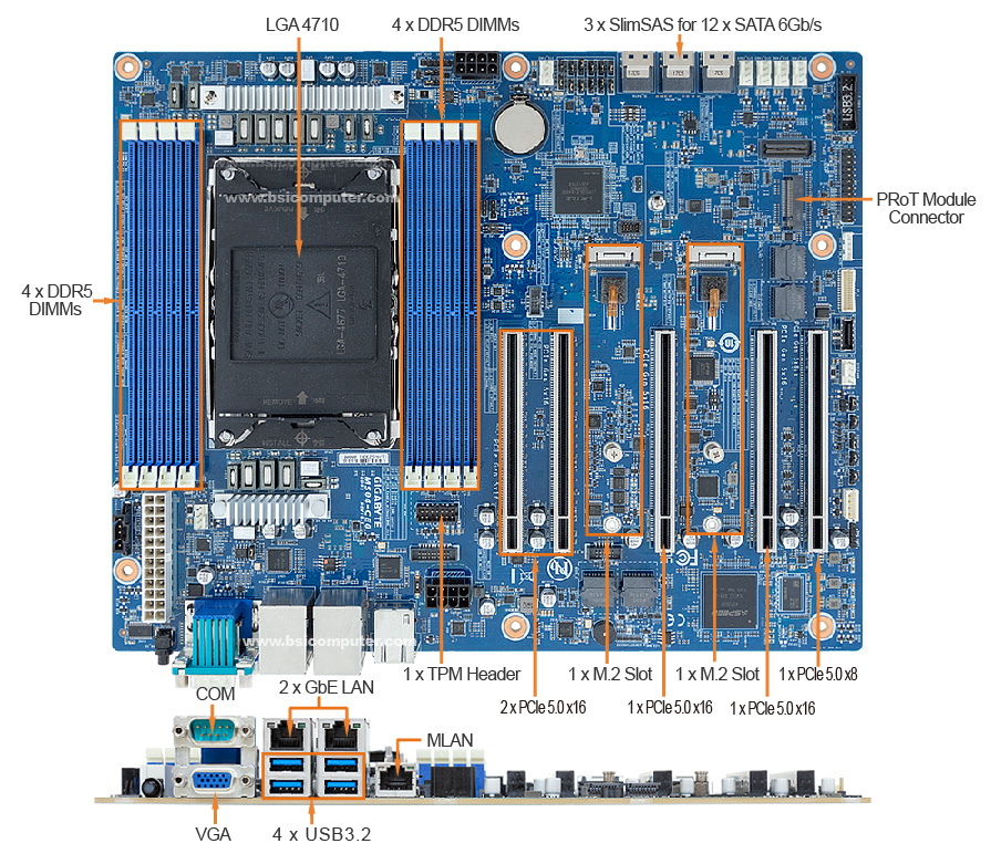 - 4 x NVMe Ports PCIe 5.0 x4 via 2 MCIO Connectors
