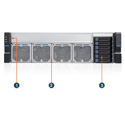 - Front Control: Power On/Off, System Reset, UID, 1 x USB 3.0